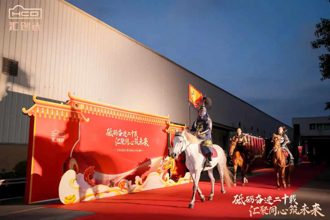 在象征着公司重要节点的聚明一厂的门口,令旗交到了十五年老员销售部业务员手中,他以奔跑的姿态朝向年会所在的聚明二厂。回顾近五年威斯尼斯wns888入口发展历程:2019 年,我司通过CNAS国家实验室认证;2020 年,我司在深交所A股挂牌上市,股票代码300909。同步,通过华为全制程认证展开合作;2021年,我司导入了SAP、ERP系统,智能制造事业部成立;2022年,深汕合作区基地投产,我们全资收购了东莞信为兴,全面进入精密连接器领域;2023年,东莞汇创新能成立,威斯尼斯wns888入口进军新能源领域,集团全面导入 MES 系统,目前最大的生产基地珠海威斯尼斯wns888入口已经开工建设!